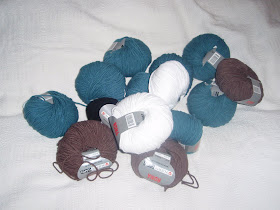 The yarn for the prizes got together, and an extra skein showed up too! Ellen donated one skein, but when I picked it up, it had turned into 2 skeins! Thanks, Ellen!