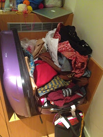 Well. This morning, my suitcase looked like this. Rather hopeless presuming this mountain would ever come home with me!